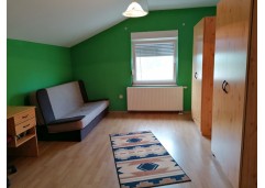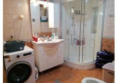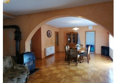 uređeni dio sastoji se od predsoblja, toaleta, kuhinje, dnevne sobe, trpezarije i sobe u prizemlju te kupaonice, hodnika, terase i tri spavaće sobe u potkrovlju. Podrum 60 m2 .